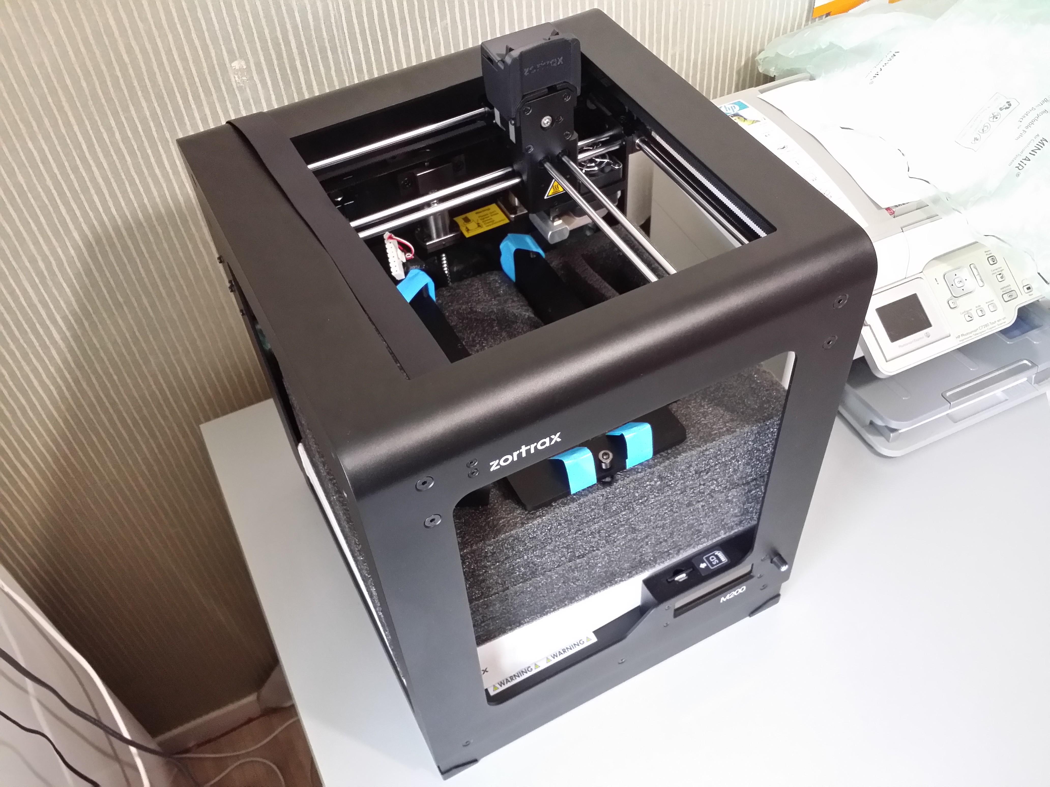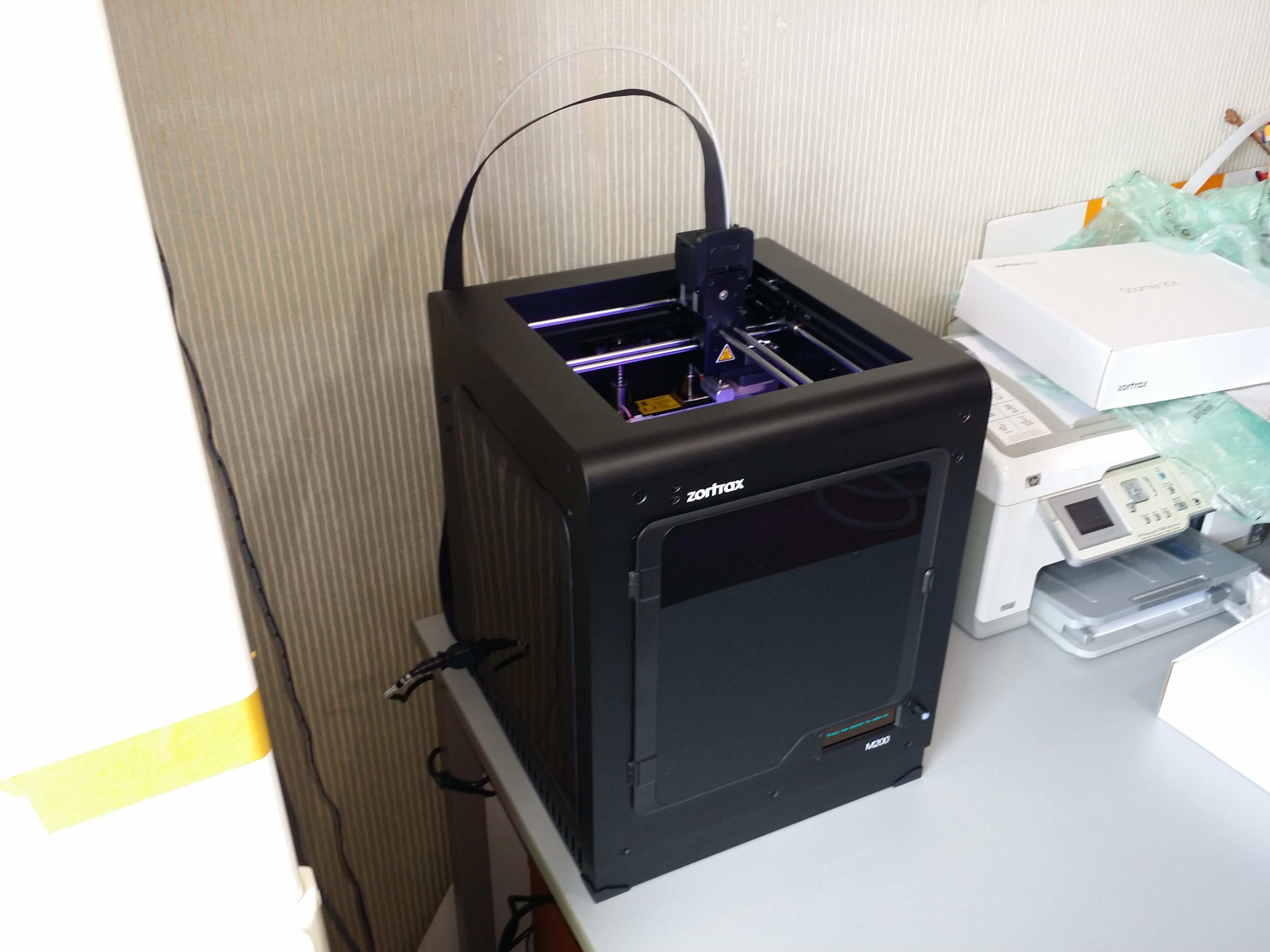 Cela faisait un an que je suivais l’actualité de l’impression 3D. Plusieurs de mes amis ont goûté à la mode du maker. L’un d’entre eux crée des machines sur mesure produites en petite série. Un autre exploite sa fibre artistique pour donner vie à des sculptures jusque-là uniquement virtuelles. Pour moi, c’est la découverte par la pratique, en début d’année, des objets connectés, qui m’a fortement poussée à m’intéresser à l’impression. Programmeur par passion dès le plus jeune âge, j’ai toujours été contraint par le matériel existant. La découverte de l’Arduino (et du Teensy), puis du Raspberry Pi, ont fait naître divers projets informatiques personnels réclamant des supports matériels sur mesure. Or, l’impression 3D est un moyen de les mettre en pratique. Bref. Prétextant ma toute récente quarantaine, j’ai investi dans l’une des imprimantes les plus en vogue auprès des connaisseurs : une Zortrax M200 (version 4 ou v4). Voici mes premières impressions.