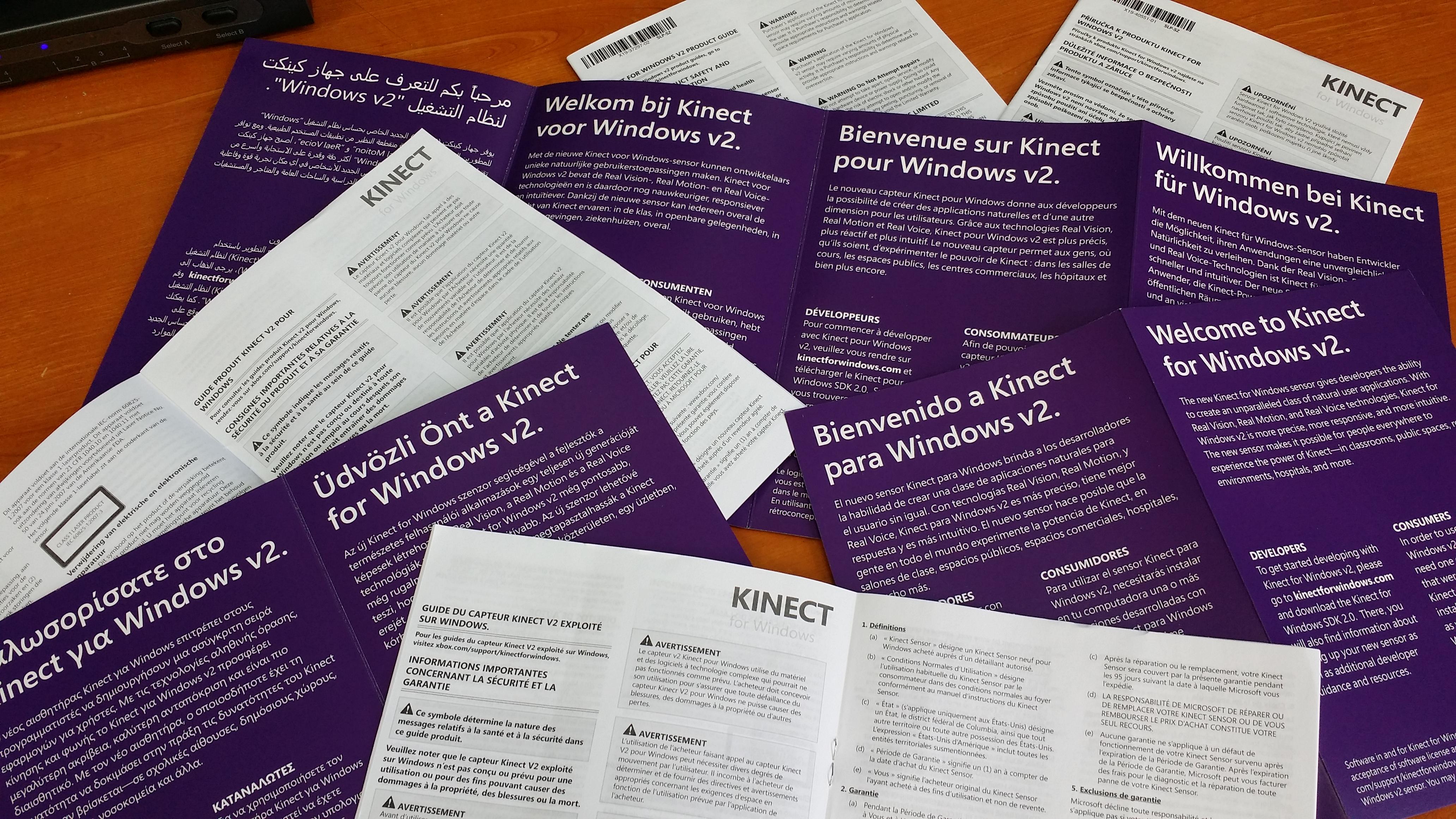 Garantie et documentation en vrac de Kinect pour Windows v2