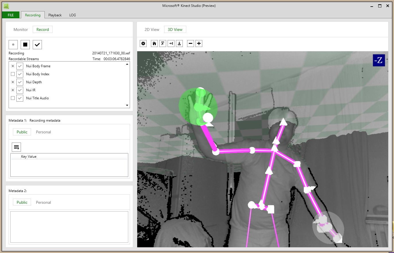 Capture d'écran du logiciel Kinect Studio livré avec le SDK dédié